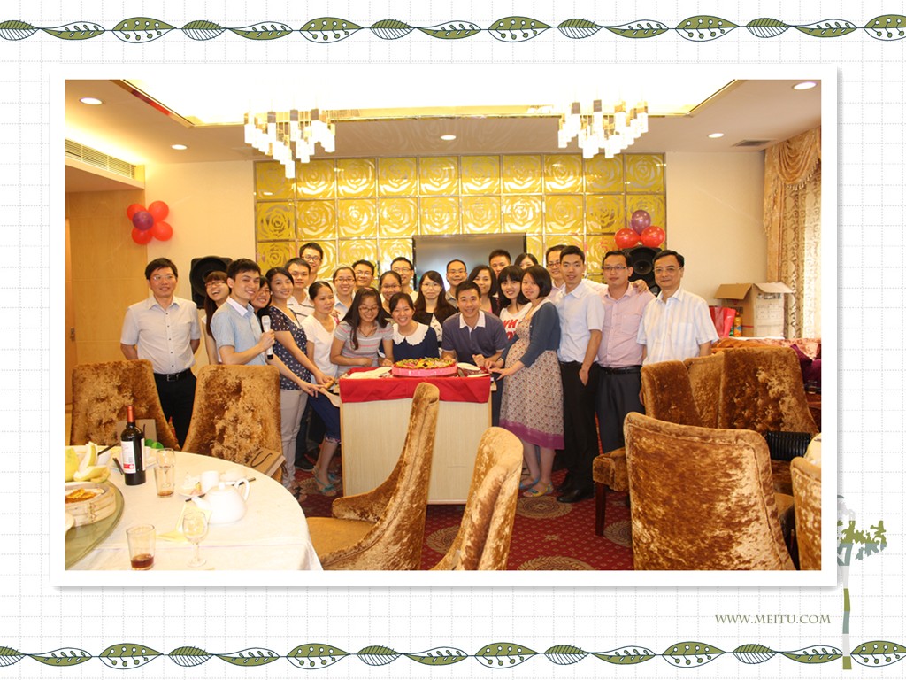 緣分是長(zhǎng)長(zhǎng)久久的相系,朋友是一生一世的牽掛,時(shí)光帶不走你我的笑容,歲月沖不淡你我的快樂(lè)。是光華提供這樣一個(gè)平臺(tái),讓我們彼此相知,讓我們記住這個(gè)快樂(lè)和充滿溫情的生日會(huì),讓我們的友誼跟隨著工作一起升華,讓陽(yáng)光燦爛的日子永遠(yuǎn)伴隨光華人的每一天!最后,再一次祝福壽星們?cè)谖磥?lái)的歲月里,工作順利,闔家歡樂(lè)!