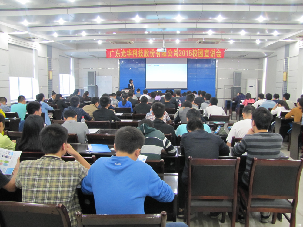 光華科技2015校園招聘會(huì)通過校園宣講會(huì)、現(xiàn)場招聘會(huì)、網(wǎng)絡(luò)招聘三種方式予以實(shí)施,截止到11月14日,校園宣講會(huì)已在中山大學(xué)、華南理工大學(xué)、暨南大學(xué)、湖南大學(xué)、中南大學(xué)、武漢大學(xué)、華中科技大學(xué)、四川大學(xué)、電子科技大學(xué)、上海交通大學(xué)、華東理工大學(xué)、北京理工大學(xué)、北京化工大學(xué)及南昌大學(xué)等14所國內(nèi)重點(diǎn)知名高校順利召開。