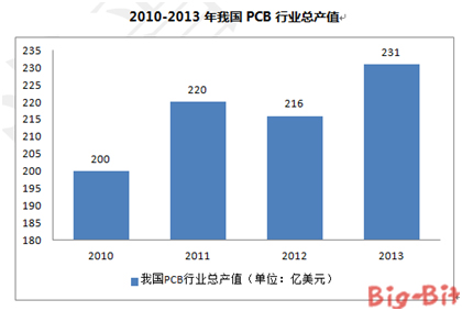 過去十年來,全球PCB持續(xù)向亞洲尤其是中國大陸遷移,中國大陸迅速成為電子產(chǎn)品和PCB生產(chǎn)大國。中國因內(nèi)需市場潛力與生產(chǎn)制造優(yōu)勢,吸引外資紛紛進駐,促使中國大陸PCB產(chǎn)業(yè)在短短數(shù)年內(nèi)以倍數(shù)成長,行業(yè)總產(chǎn)值從2000年的33.68億美元到2012年的216.36億美元,已發(fā)展成為全球最大的PCB生產(chǎn)國家。據(jù)預測,未來幾年中國PCB行業(yè)仍保持快速增長趨勢,在全球的市場地位也將繼續(xù)提升;2012年至2017年中國PCB產(chǎn)值年復合增長率可達6.0%,到2017年總產(chǎn)值可達到289.72億美元,占全球PCB總產(chǎn)值比例上升至44.13%。