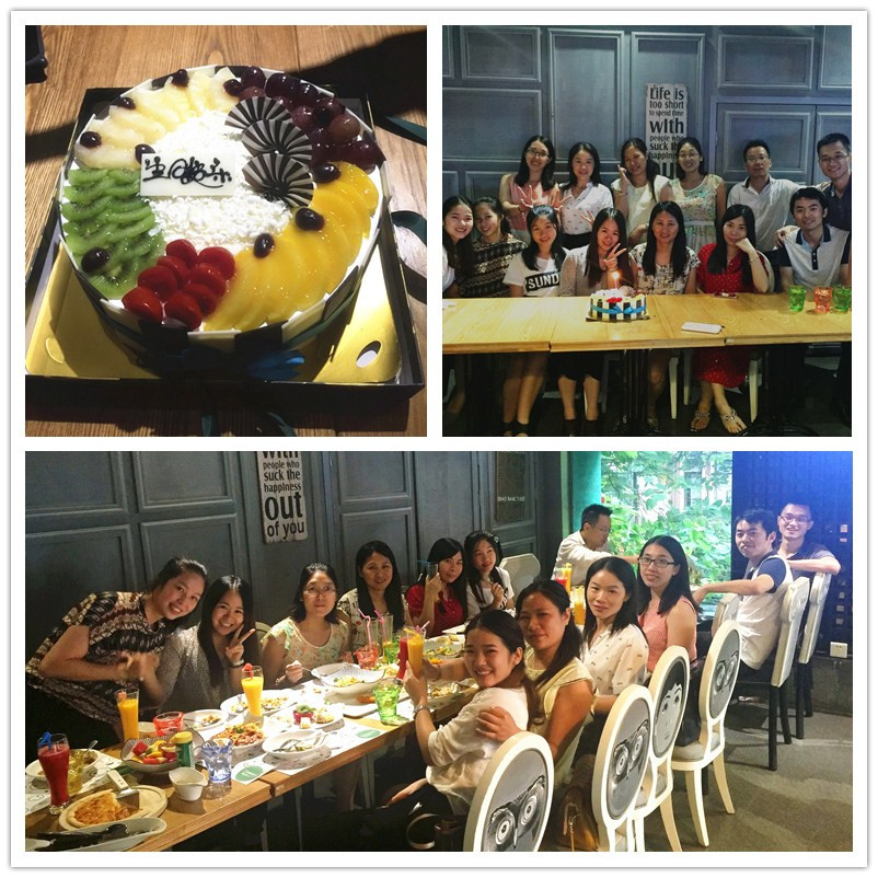 2016年7月22日晚,營銷中心第一、二季度員工生日會在綠茵閣餐廳舉行。生日會當晚,壽星們少了平日的幾分忙碌,多了幾許濃濃的人情味,大家歡聚在一齊用餐,同時公司還為壽星們準備了精美的小禮物?,F(xiàn)場呈現(xiàn)一派歡樂祥和的氣氛,壽星一起許愿吹蠟燭,然后一起分享生日蛋糕的時候,生日會的氣氛推向了高潮。一張張燦爛的笑臉,一聲聲真誠的祝愿,一樣的生日聚會,每次都給“光華人”不同的感動!