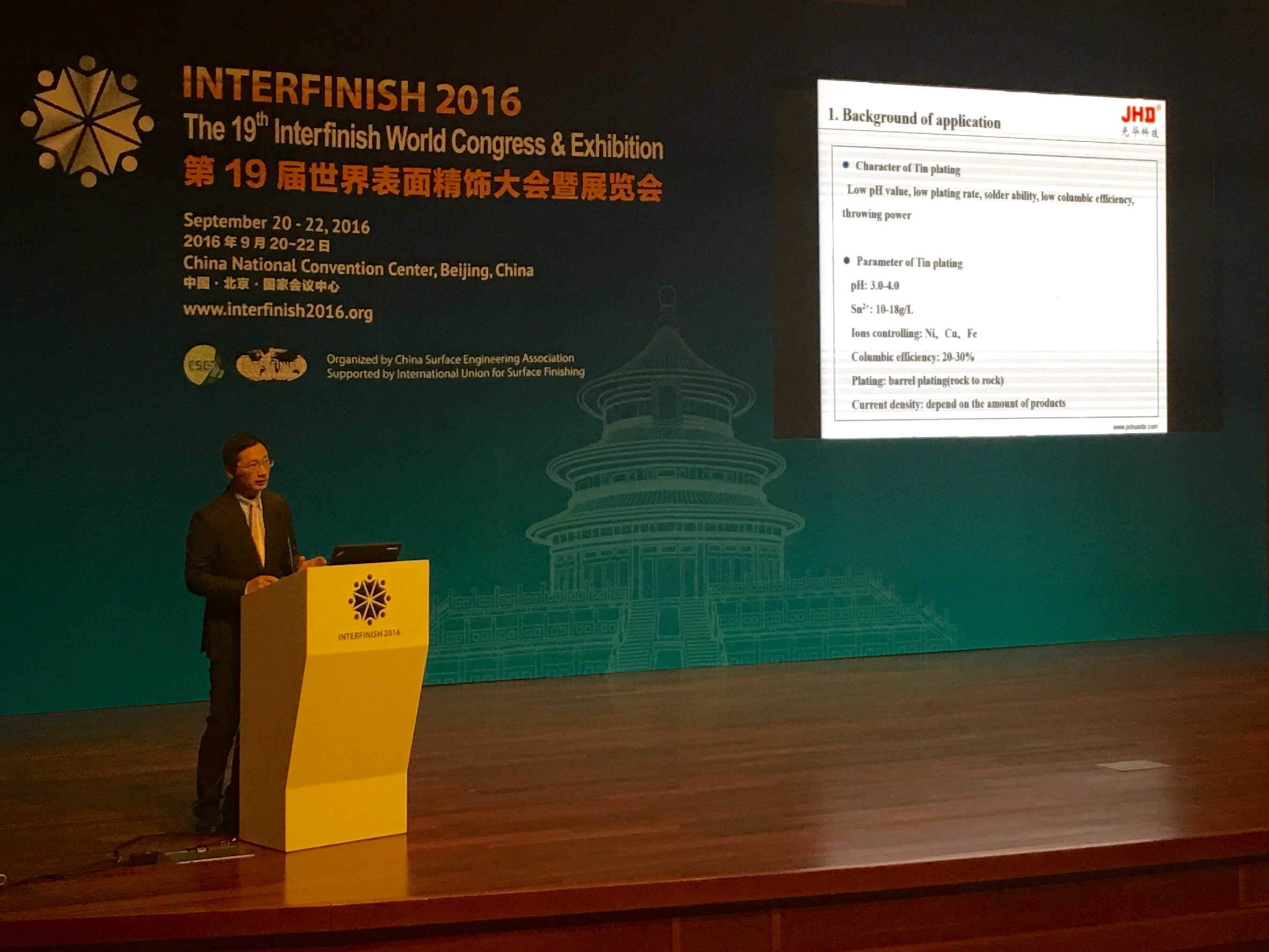 在今天的主題報告發布會上,光華科技于上午時分,由任博士做了主題為“純錫電鍍液在被動元件中的運用”的演講,向與會的業內專家學者及同行介紹了自行研發的新型純錫電鍍液研究成果,主要包括:增強陶瓷電阻批次內的穩定性;使鍍錫層均勻致密,顆粒的一致性非常好;明顯降低電阻產品雙聯率,提高產品合格率等。