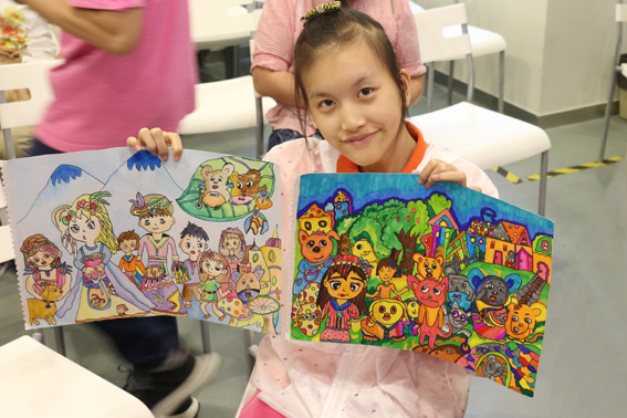 現場的活動里,先是開展了有趣的按指令畫畫小熱身環節。隨后,主持人向大家展現了孩子們一幅幅美妙的繪畫作品,有的構圖新穎,有的色調優美,有的畫風細致……每一幅畫,都蘊藏著孩子們對社會的感受,以及對美好生活的向往和祝福。精彩的畫作,加上主持人妙語連珠的講解,使得現場變成一片歡樂的海洋。