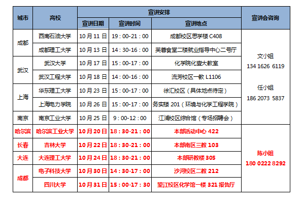 附:光華科技2018年度校園招聘具體時間安排(紅色字體部分為新增宣講會院校)