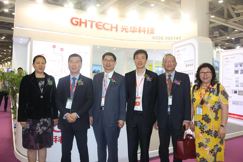 隨后,嘉賓團TPCA理事長吳永輝先生、海峽經濟科技合作中心副主任刁紅女士等一行蒞臨光華科技展臺參觀指導。