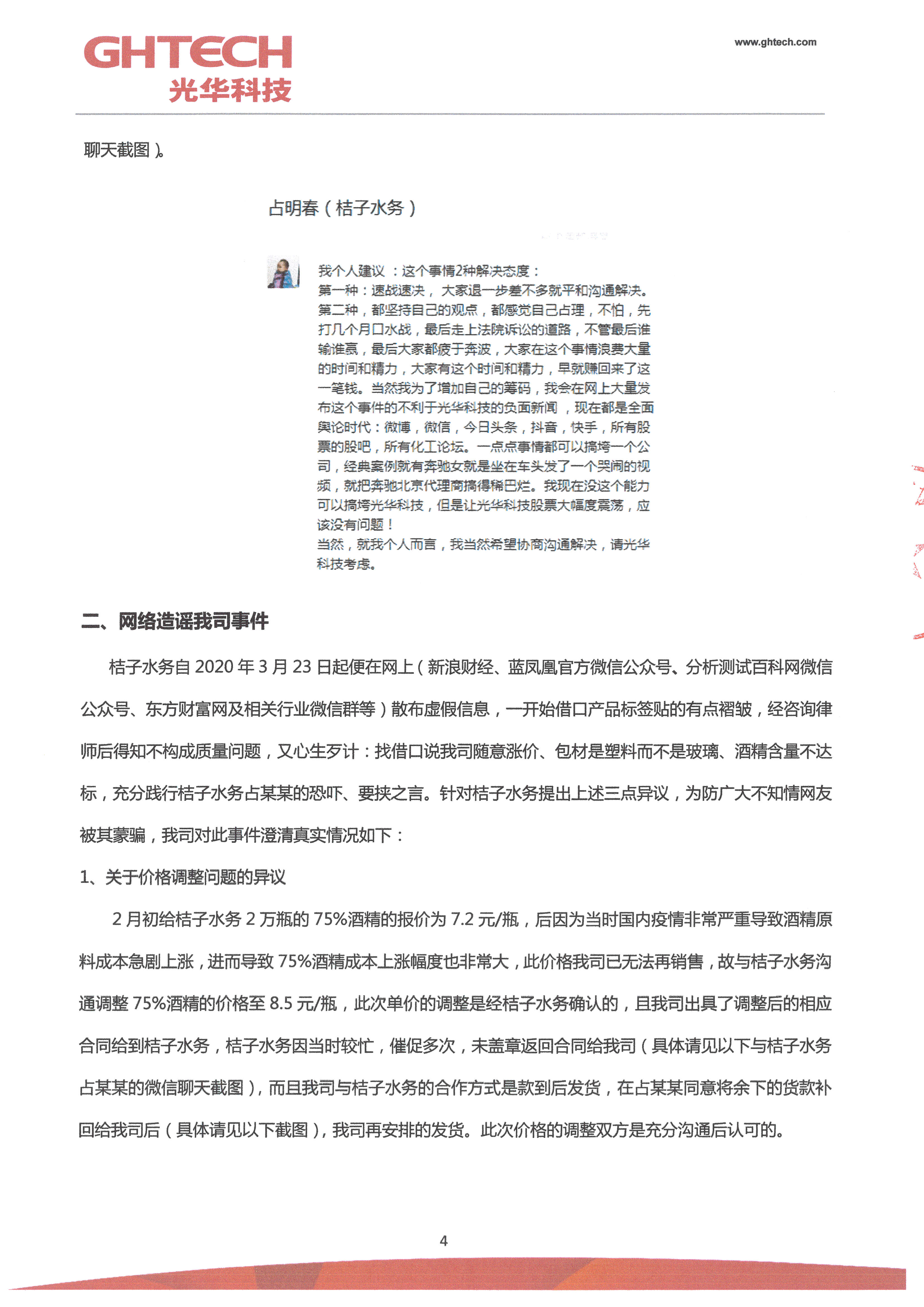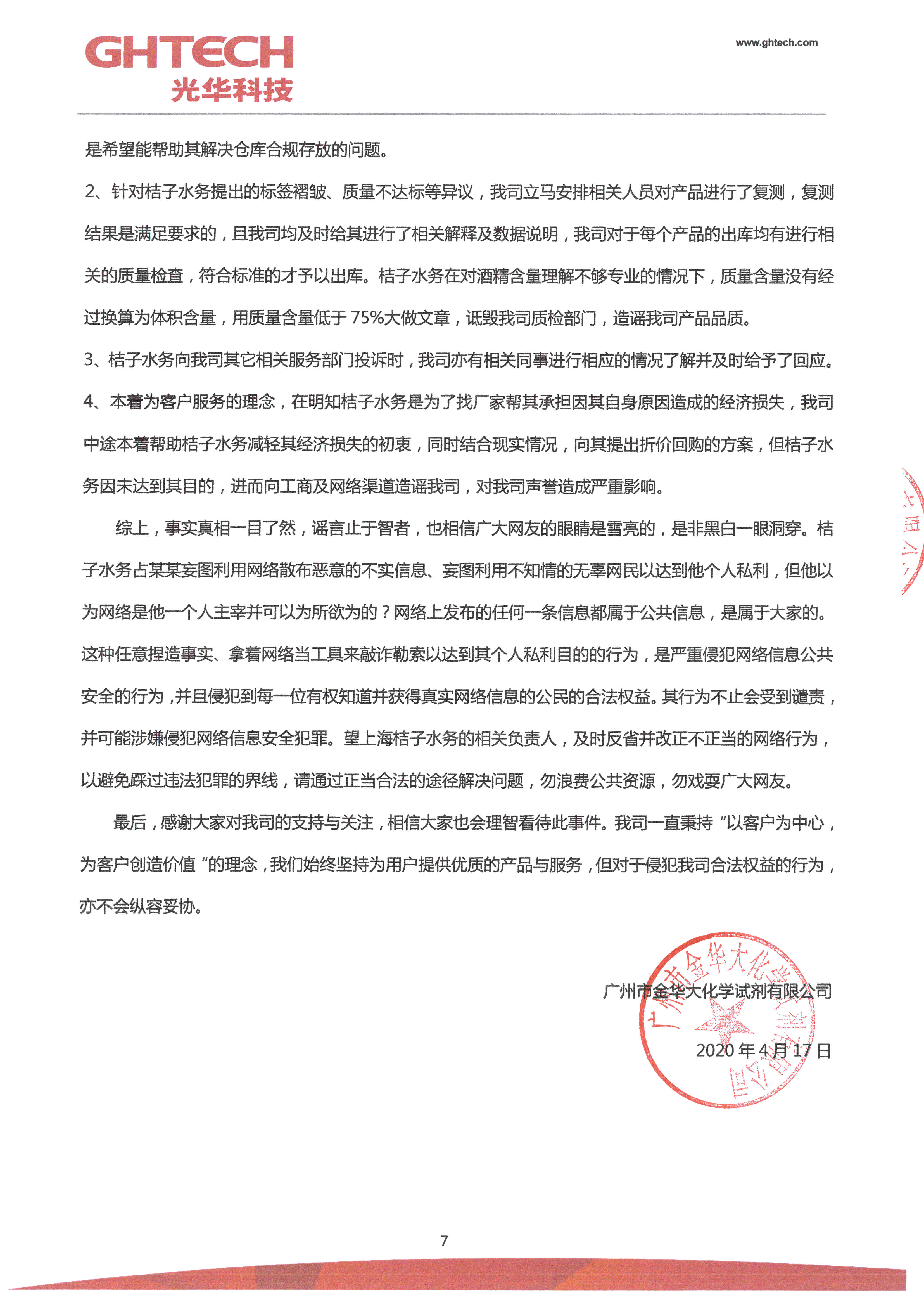 針對近期上海桔子水務(wù)網(wǎng)上造謠污蔑光華科技事件的聲明