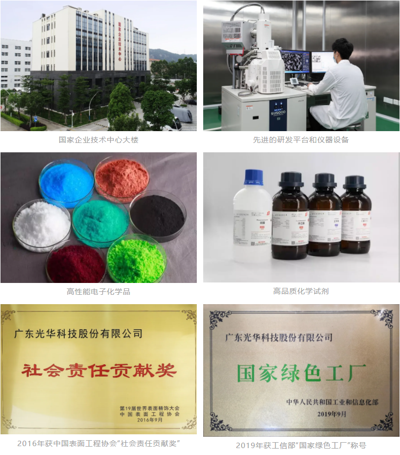 創(chuàng)新驅(qū)動,綠色發(fā)展。光華科技深耕化工行業(yè)40年來,始終堅持以市場為導(dǎo)向,應(yīng)行業(yè)發(fā)展及市場需求不斷進(jìn)行技術(shù)創(chuàng)新,為全球客戶提供優(yōu)質(zhì)產(chǎn)品及服務(wù),積極推動專用化學(xué)品行業(yè)的進(jìn)步。在創(chuàng)新驅(qū)動方面,光華科技視研發(fā)創(chuàng)新為企業(yè)之本,組建起了完善的研發(fā)體系,引進(jìn)國際化高端人才及技術(shù),開展5G及其他前沿技術(shù)/產(chǎn)品的研發(fā),助力客戶提升競爭優(yōu)勢。目前,光華科技已擁有2個國家級科研平臺、4個省部級科研平臺、10余所產(chǎn)學(xué)研及產(chǎn)業(yè)鏈合作單位,承擔(dān)/參與了國家及省部級項目30余項,發(fā)明專利超170件,科研成果獲得國家及省部級獎項15 項。綠色發(fā)展方面,光華科技按照循環(huán)經(jīng)濟的社會發(fā)展路線,對公司生產(chǎn)經(jīng)營實施循環(huán)經(jīng)濟戰(zhàn)略,2016年公司獲得“社會責(zé)任貢獻(xiàn)獎”榮譽,2018年獲得“廣東省省級清潔生產(chǎn)企業(yè)”、2019年9月獲得“廣東省節(jié)水型企業(yè)”,同年獲得工信部“國家綠色工廠”認(rèn)定,推動行業(yè)可持續(xù)發(fā)展。