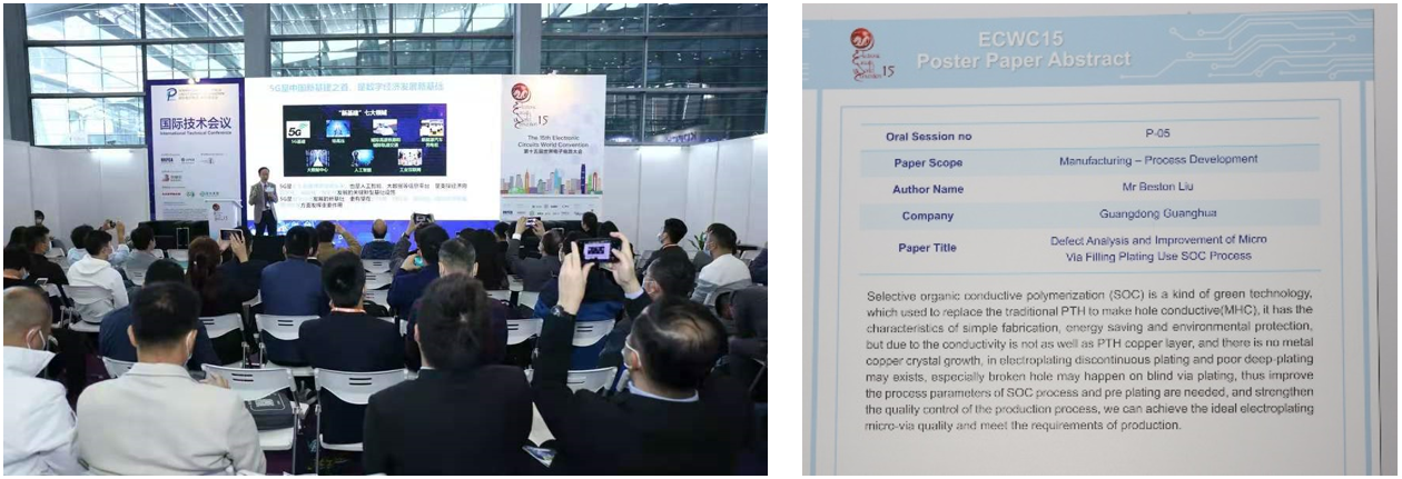 2020國際電子電路(深圳)展覽會不僅展示范圍豐富,更致力于通過行業(yè)分享和趨勢解讀幫助業(yè)內(nèi)人士開拓視野,啟迪思維,舉辦多場高水準(zhǔn)創(chuàng)新論壇,增強(qiáng)展會軟實力。同期舉行的第十五屆世界電子電路大會(ECWC15) 會議,匯聚了全球業(yè)界領(lǐng)袖及專家學(xué)者議題全面覆蓋市場及技術(shù)發(fā)展。光華科技技術(shù)中心副總經(jīng)理劉彬云先生論文入選,與參會者對PCB熱點(diǎn)技術(shù)及市場發(fā)展的真知灼見,探討電子電路領(lǐng)域熱門議題、最新技術(shù)發(fā)展和趨勢,助參會者一起把握行業(yè)最新資訊,洞見未來。