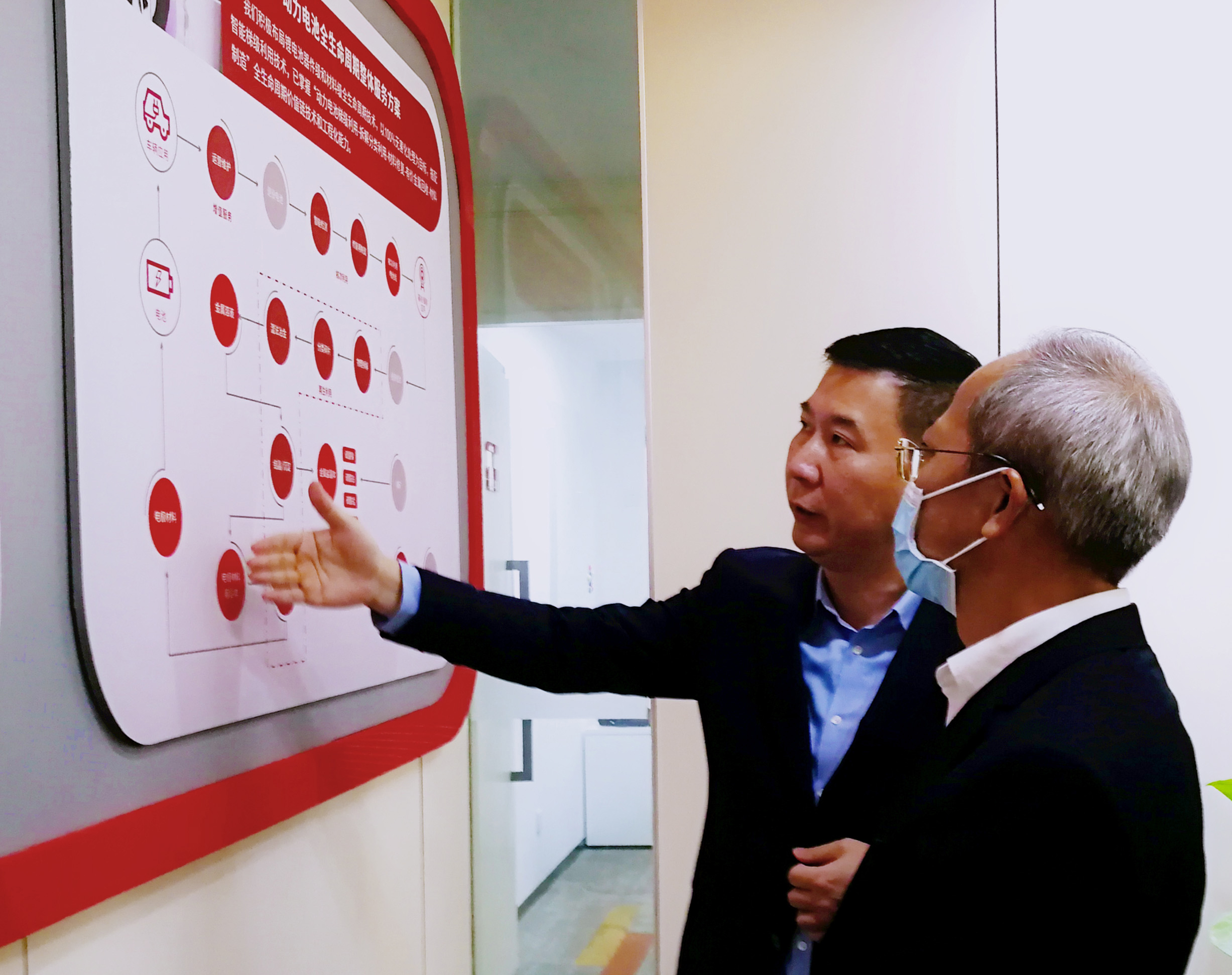 陳德俊區(qū)長(zhǎng)一行首先重點(diǎn)參觀了光華科技坐落在廣州番禺創(chuàng)新科技園的國(guó)家企業(yè)技術(shù)中心,就光華科技的發(fā)展歷程、經(jīng)營(yíng)狀況、行業(yè)競(jìng)爭(zhēng)力等做了詳細(xì)了解。在參觀中,鄭靭總裁就光華科技的產(chǎn)業(yè)布局、人才強(qiáng)企與可持續(xù)發(fā)展戰(zhàn)略進(jìn)行整體匯報(bào),闡述公司在5G、半導(dǎo)體、新能源材料與電池梯次利用等產(chǎn)業(yè)的未來(lái)規(guī)劃與發(fā)展訴求。
