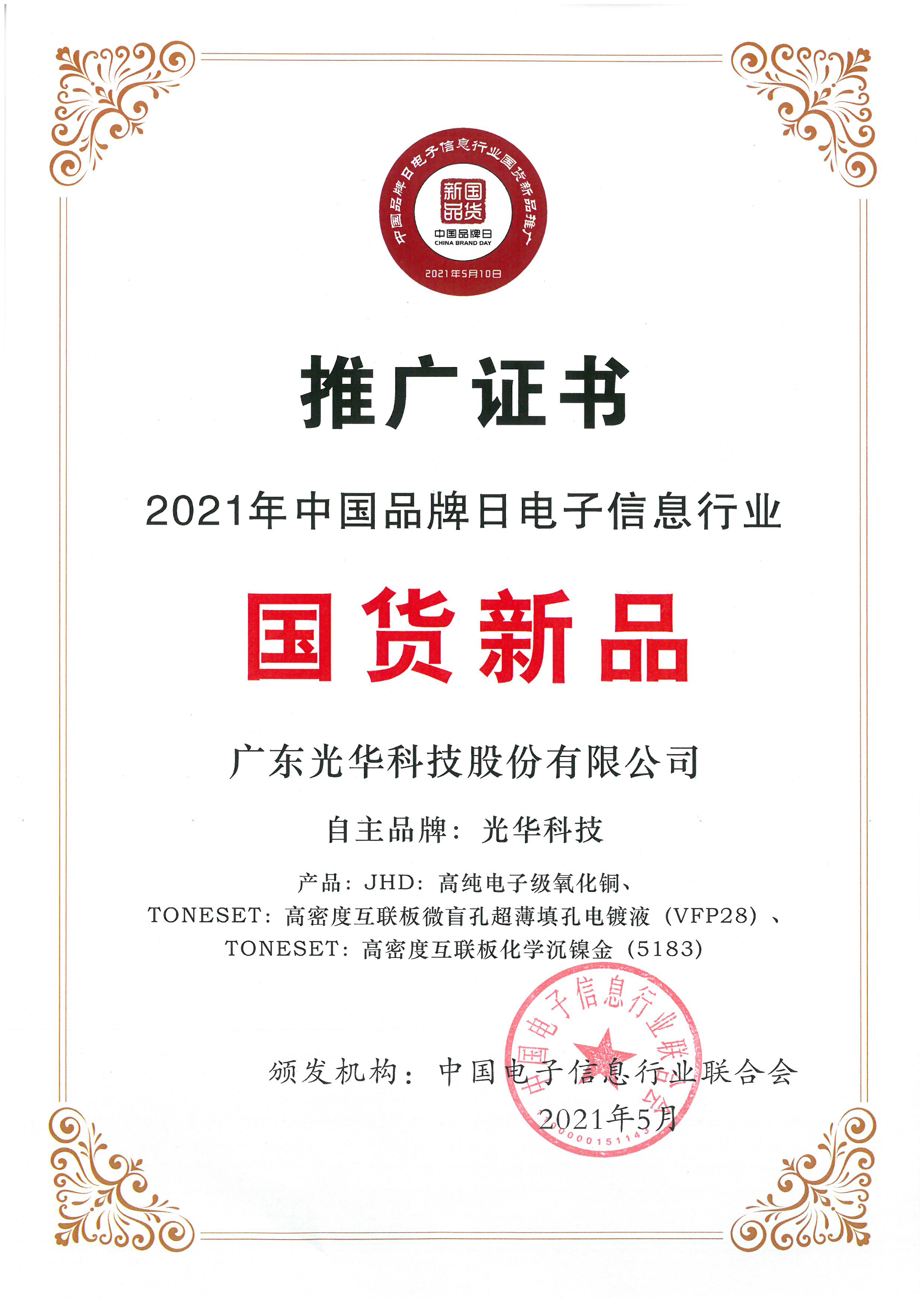 2021年是“十四五規劃”的開局之年,也是中國品牌建設的關鍵之年,中國越來越多品牌已成為國家名片。在今年中國品牌日活動中,光華科技旗下產品品牌JHD的高純電子級氧化銅,憑借廣泛應用于集成電路領域、質量達到國際領先水平、與全球知名標桿客戶長期戰略合作等優勢脫穎而出,入選由中國電子信息行業聯合會頒發的“2021年中國品牌日電子信息行業國貨新品”目錄。“國貨”光華科技高純電子級氧化銅為何做到行業持續領先?下面為您一一揭秘!