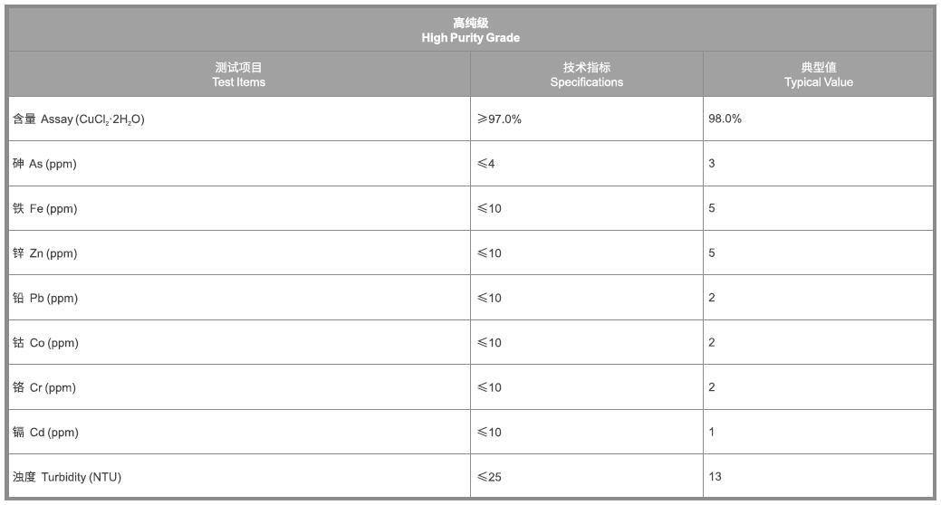 主要用于電鍍銅和化學鍍銅;用作媒染劑、氧化劑、木材防腐劑、食品添加劑、消毒劑等,也用于石油餾分的脫臭和脫硫、金屬提煉、照相等;作為氯化試劑、氧化試劑和路易斯酸試劑。