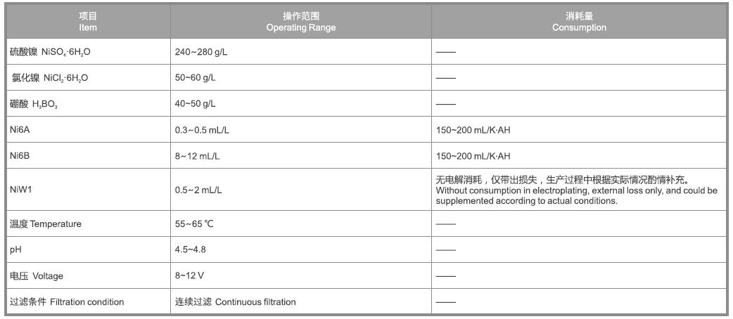 Ni6A:俗稱光亮劑,負(fù)責(zé)出光和填平。Ni6A不足時(shí),出光速度變慢;Ni6A過(guò)量時(shí),低電流密度區(qū)發(fā)暗,鍍層脆性大;